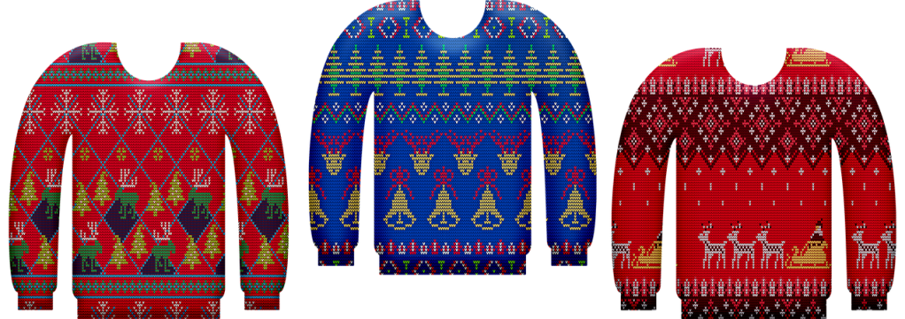 I would LOVE a Christmas jumper, but they haven’t really arrived in Switzerland yet and as I tend to avoid travelling to the UK in winter, I don’t get the chance to buy them. And yes, I know I could order online, but that’s not the same as going into a shop crammed with frantic Christmas shoppers and choosing wacky jumpers for all the family. I suppose I could knit them…