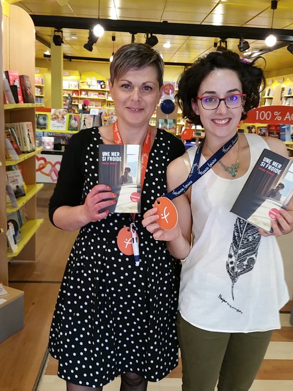 Here it is with a new Twitter friend (on the right) who works for the French publisher, and kindly agreed to her photos appearing on my blog. It’s an odd – but very good! – feeling, seeing my book out there, in another language, living its own life in the big wide world.