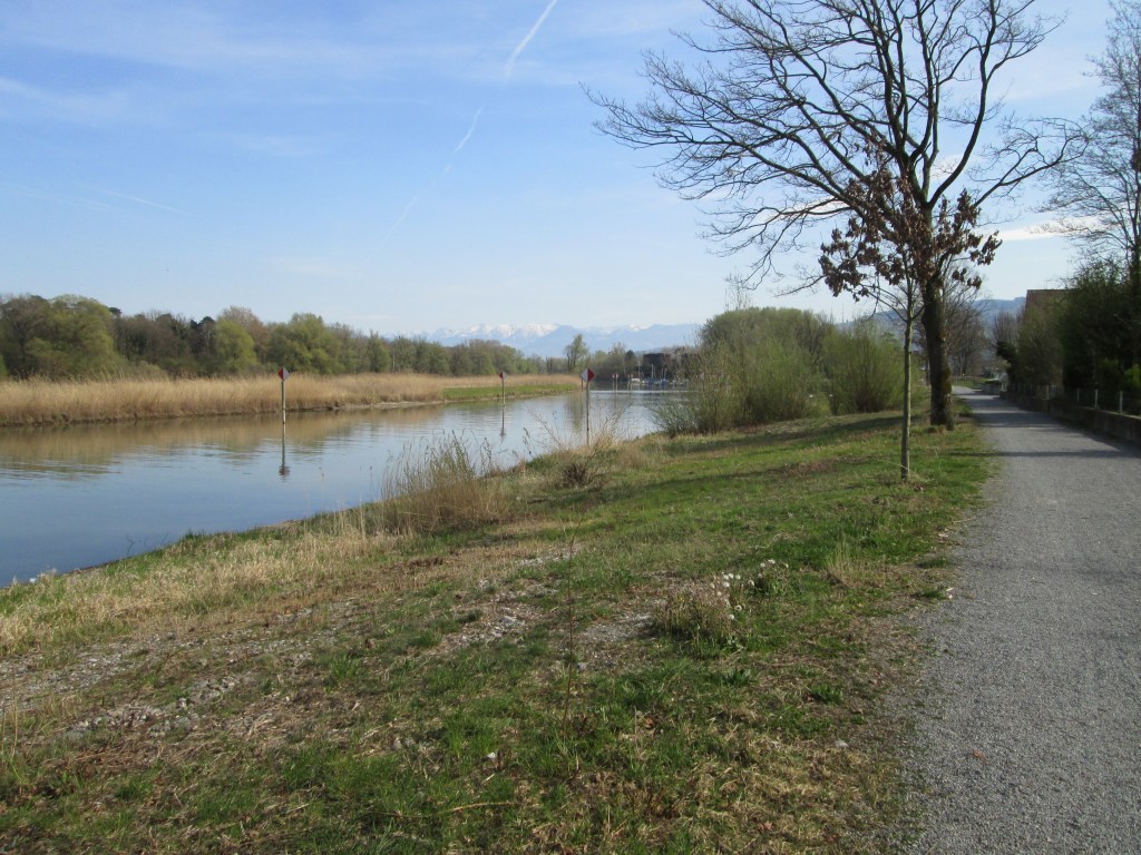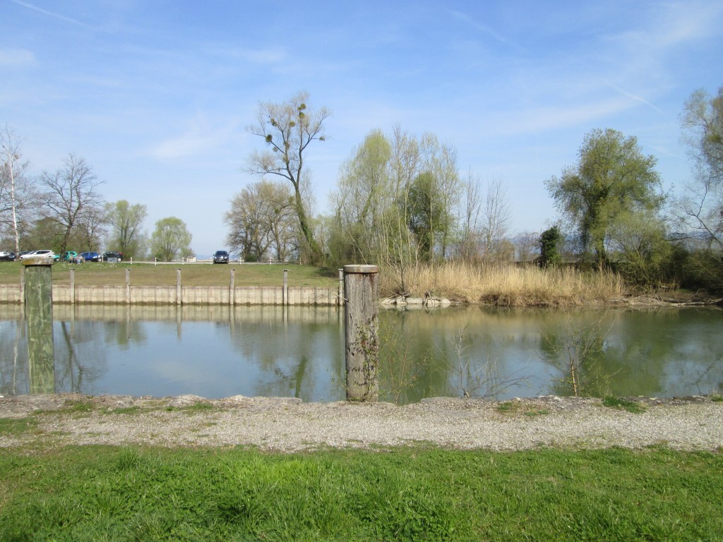 We were at Altenrhein, the border between Switzerland and Austria, where the ‘old’ Rhine flows towards Lake Constance. (The modern Rhine is a couple of hundred metres to the east.) Those cars over there are in Austria; we were in Switzerland.
