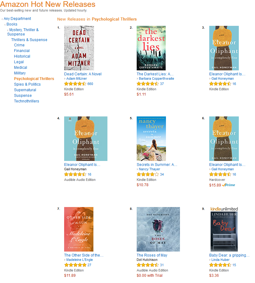 Even sunnier was my mood yesterday, when I was compiling a list of crime writers, and came across my own book at number 9 in the hot new releases chart on Amazon US. Baby Dear is doing very nicely on both sides of the Atlantic – big thanks to everyone who’s helped.