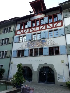 On Friday and Saturday I spent a few hours in Zug, Central Switzerland, on the way to and from Louise Mangos’ Strangers on a Bridge launch do. There’s a lot to like in Zug – a beautiful lake, a lovely historic old town – and some artwork.