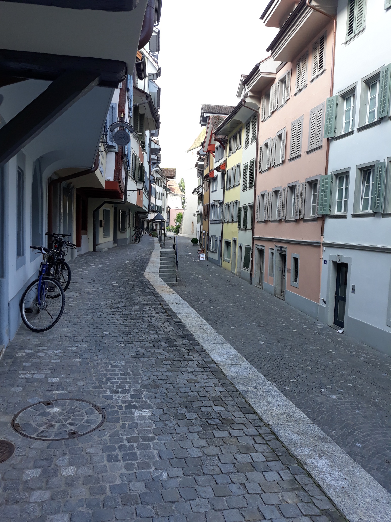 The old town first – above is the town hall, and on the right here we have early-Saturday empty streets with some wonderful old houses.