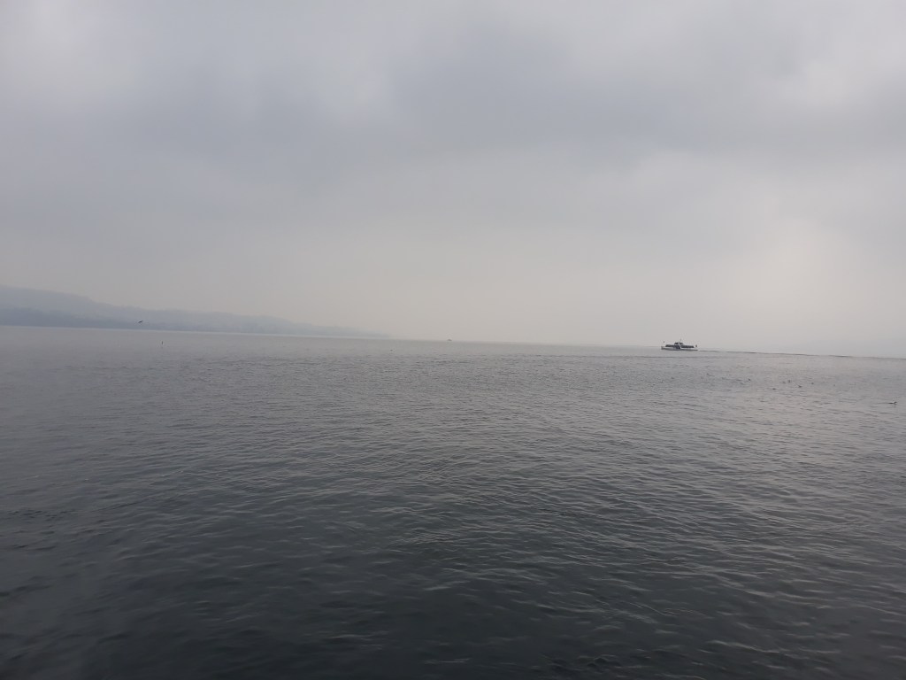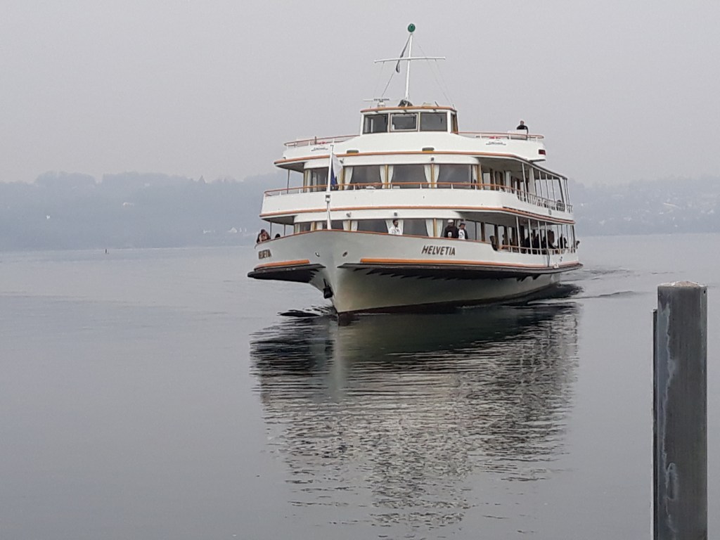 An hour after leaving leaving Sargans, we arrived at Wädenswil on Lake Zürich. Memories of a previous trip when we had to make several mad dashes to catch trains and buses were uppermost in our minds now, and we immediately went to find out where – and when – the boat to Ufenau was. The autumn haze was down again, but at least the boat was coming…