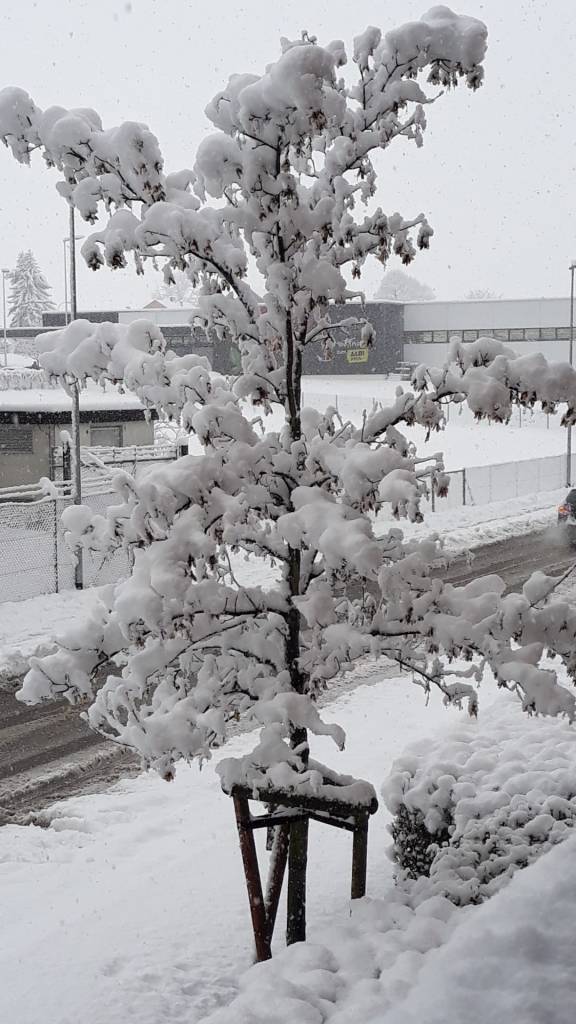 On Thursday night, it started to snow. And it snowed and snowed and snowed, and by the time we got to Friday morning, it was, well, pretty snowy. We don’t often get this much ‘down’ here in N.E. Switzerland, so here are a few wintry photos for you. I took them all from my windows or balconies – how lucky am I to have scenes like these right outside my window?