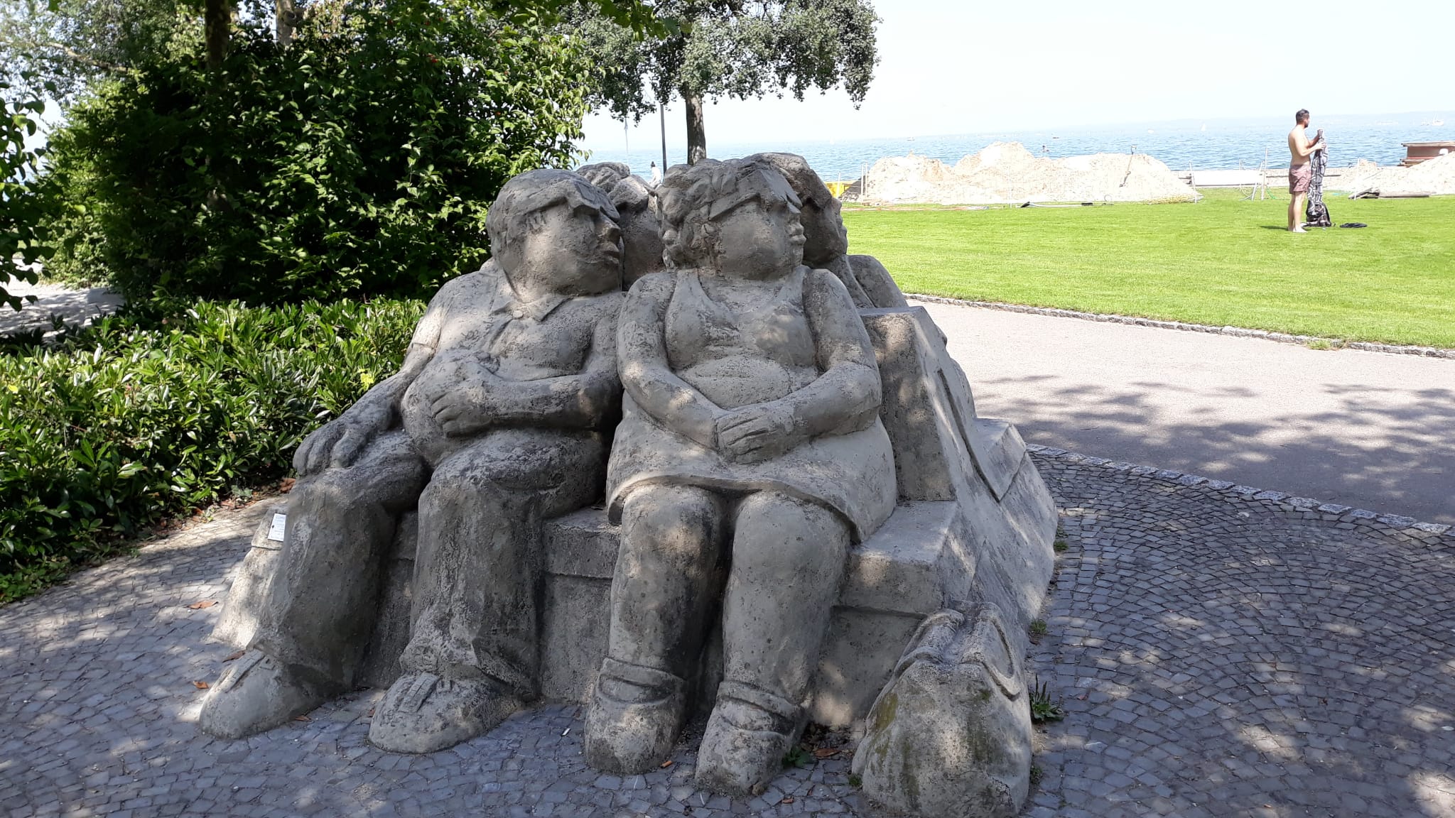 Another thing still ongoing is the International Sand Sculpture Event, held yearly in nearby Rorschach. I’ve taken my ‘before’ and ‘during’ photos, and next week I’ll go back for a few of the final offerings. They’ll have a blog post to themselves in September, always supposing they’ve survived last night’s storm. Here’s the first winner of the event, immortalised in stone back in 1999, which was also the year of a near-total solar eclipse. Remember those eclipse specs?