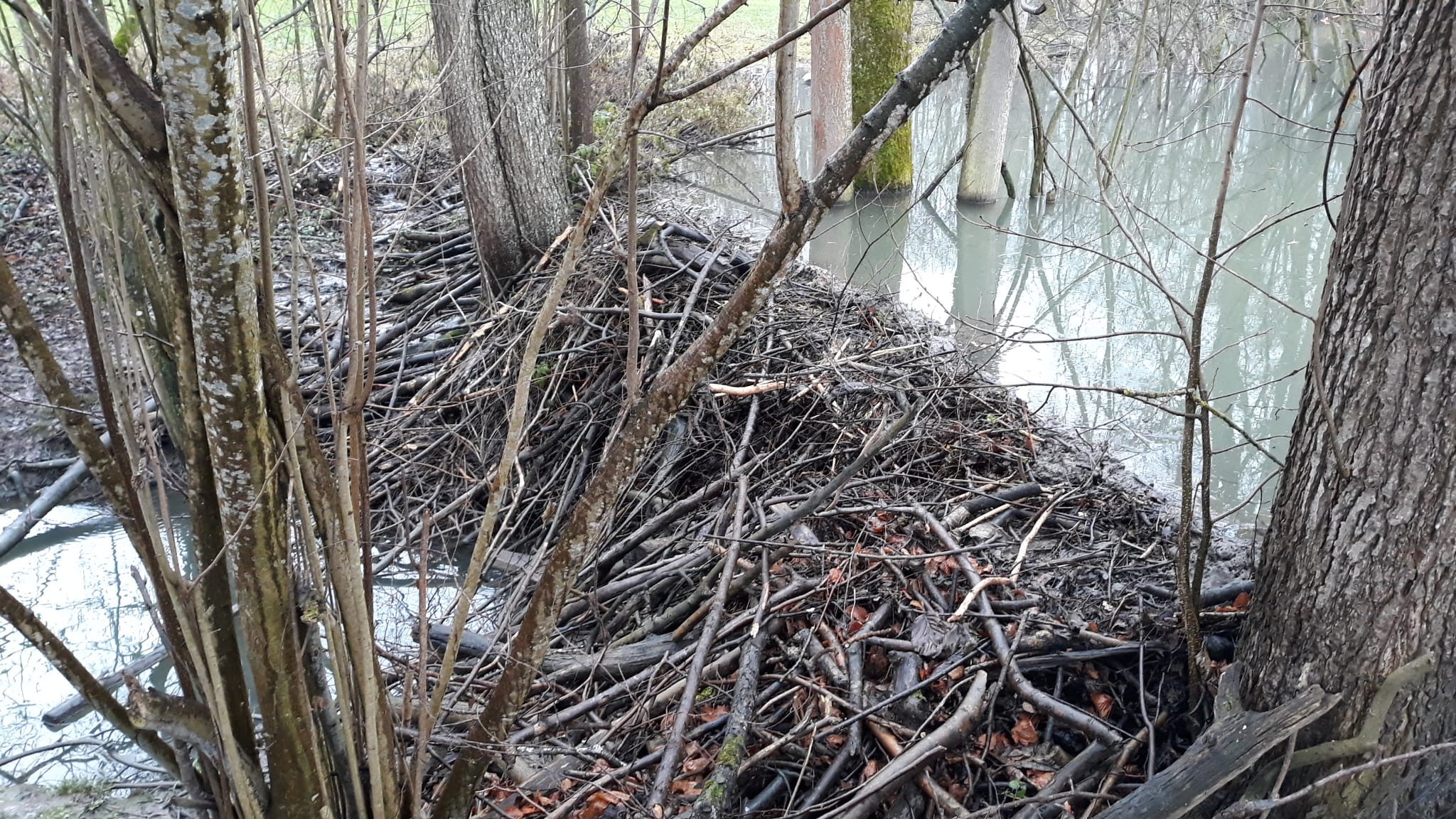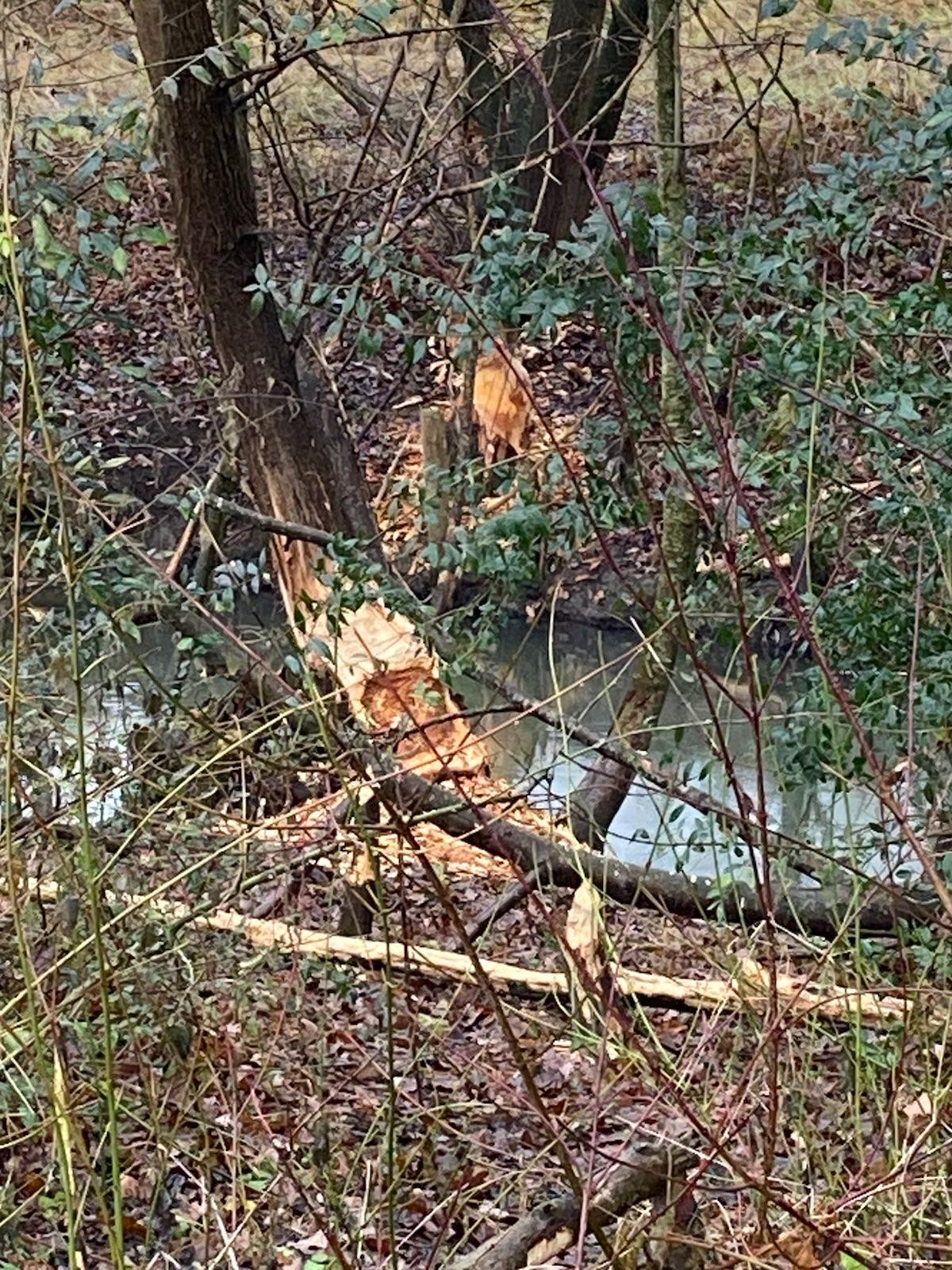 Our beavers have been busy again. The little stream that flows past the woods by my flat has two dams, an old one and a newer one. The new one was built mainly last year, I think, after the old one had to have pipes laid through it to stop the pooling water endangering the railway embankment. Recently, however, that’s where the beavers have been most active. Here are a few pics taken over the past 3-4 weeks.