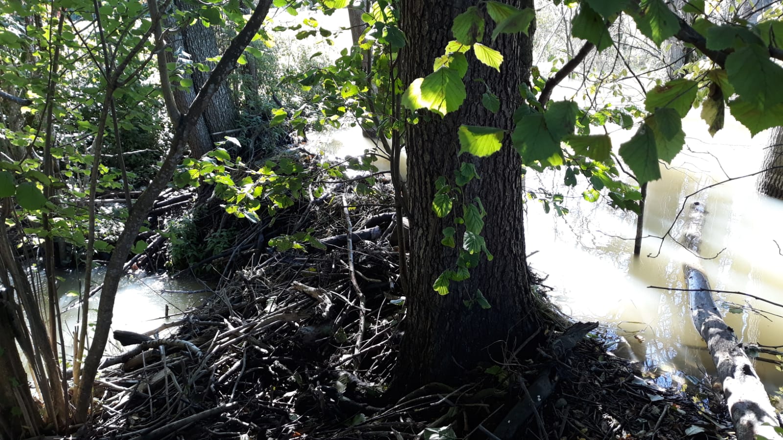 After all the rain we’ve had recently, it was good to have some sunshine last week. I thought I’d walk through the woods and see how the beaver dams (there are three) were getting on.