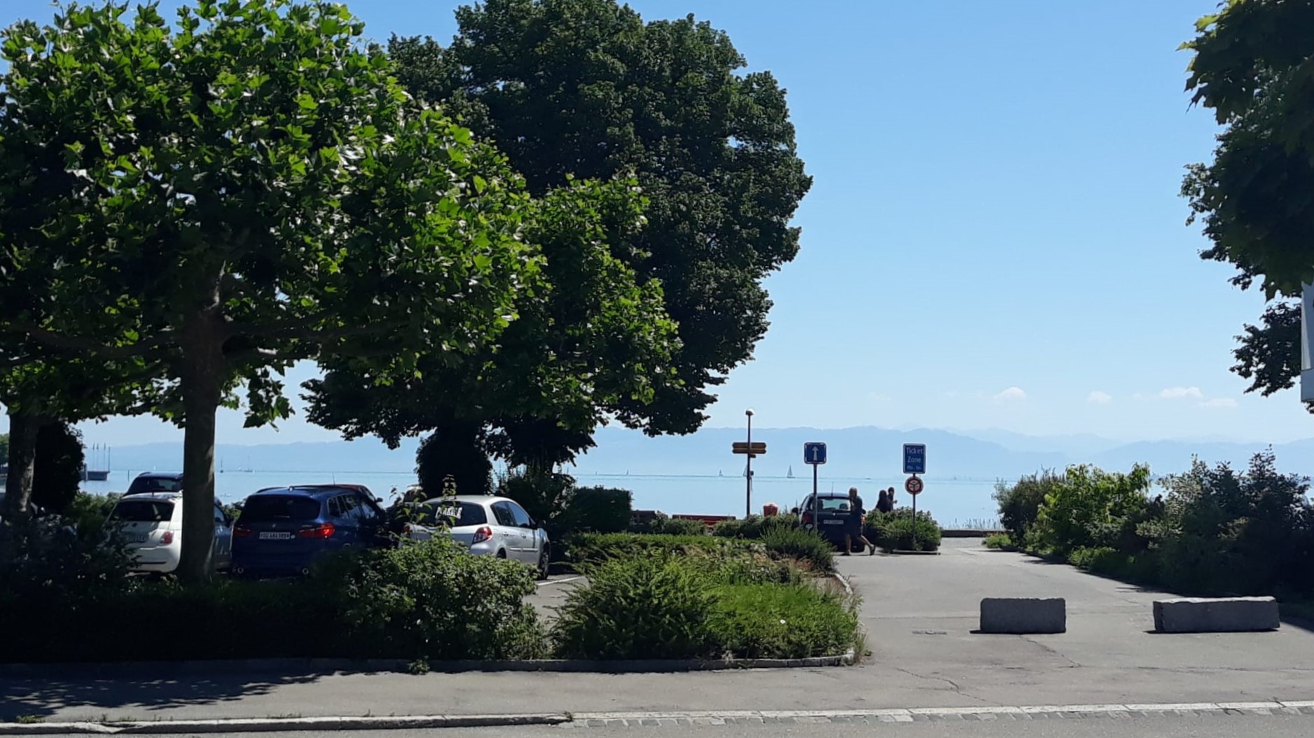 A few days later, I went shopping. In 1989, the supermarket car park was right on the lake bank. That’s it below, with Germany in the background, though the supermarket isn’t there now. That day in 1989, a crowd of people had gathered around a car, and I went to see what was happening.