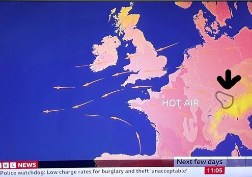 Meanwhile, Saving the Lakeside Hotel is still doing well. Did you know you can often see our large and lovely Lake Constance on the BBC weather map? This is a pic from last summer – at the moment we can only dream of hot air.