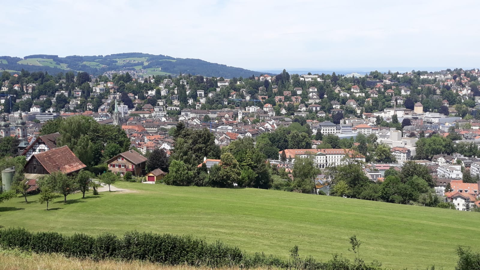 I’ve been out and about with friends and family, though, so for today’s post I’m sharing a few pics from day trips we took. It was 32° the day we went up (in a funicular) to a hilltop above St Gallen, then walked down following the river Steinach.