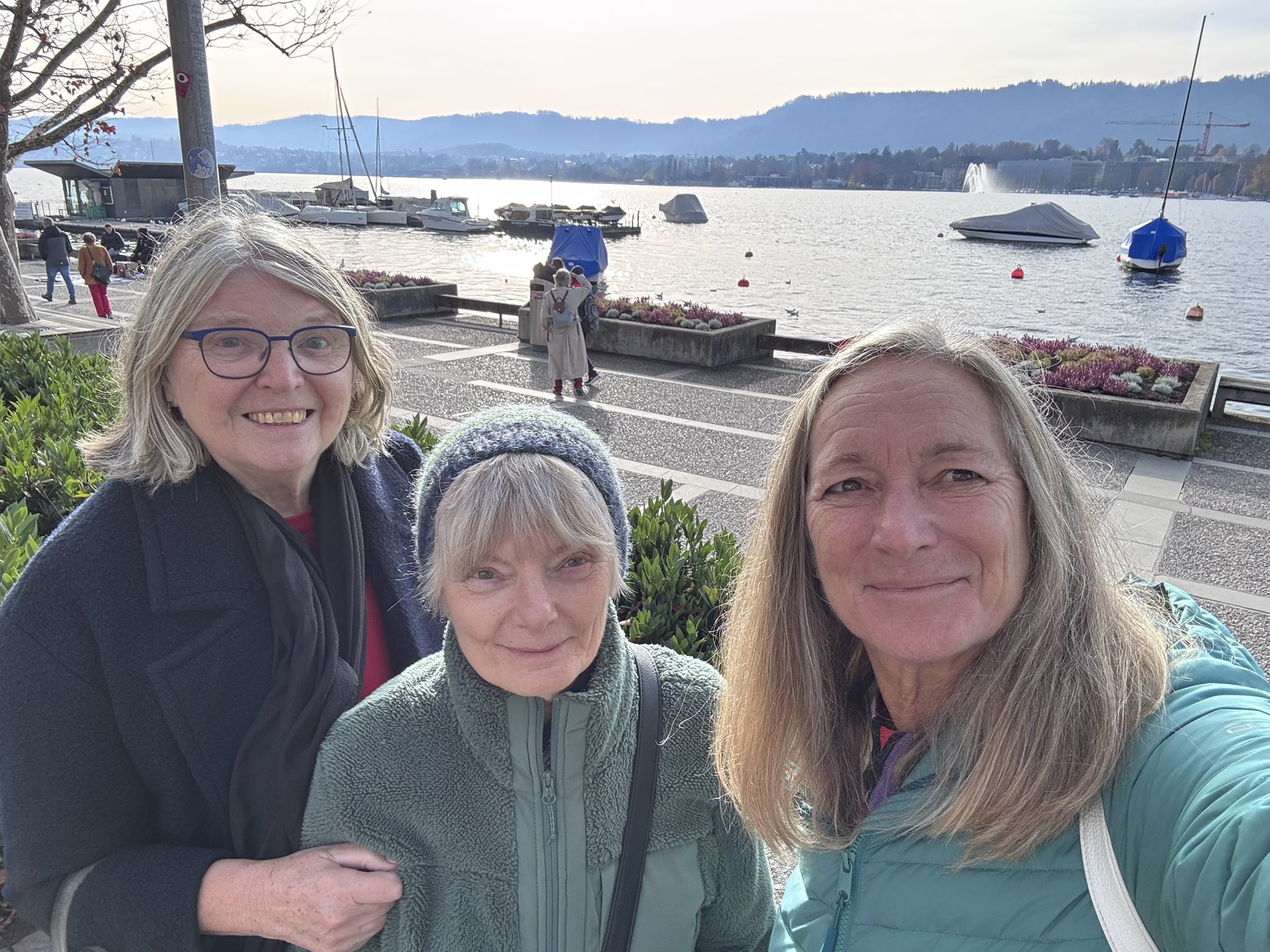 Last week, I went to Zurich to catch up with fellow writers Alison Baillie and Louise Mangos. The Christmas tree was going up in the Bahnhof – it’s to be a Lindt tree again this year. We carried on down to the lake, where it was lovely weather for us (it takes a lot to get me out of my woolly hat at this time of year, but I thought about it that day…)