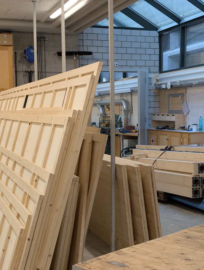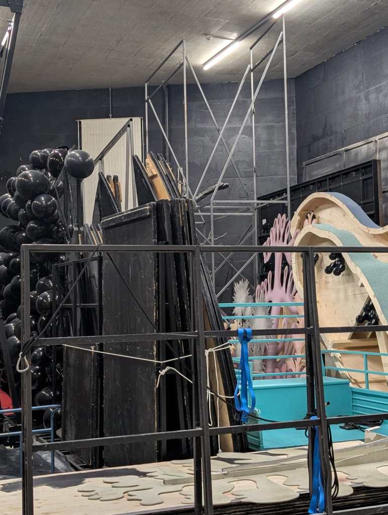 The stage was being set for a Swiss classic, Der Besuch der alten Dame, a 1956 comedy by playwright Friedrich Dürrenmat. We watched the stagehands as they worked to prepare the set – much of it involved tape measures and millimetre precision as they slid panels together. From there, we went offstage to the right, where properties were waiting to be put in place.