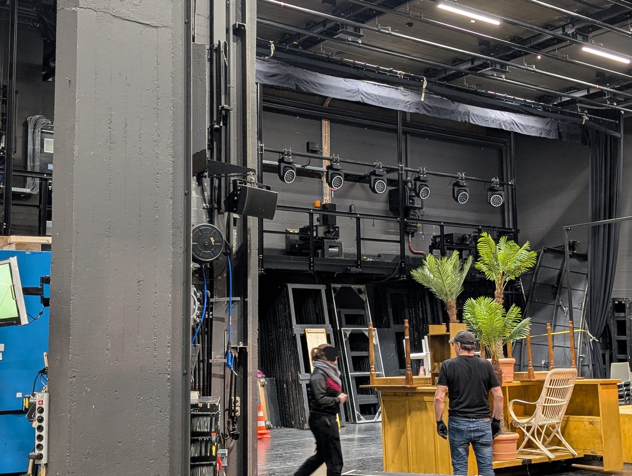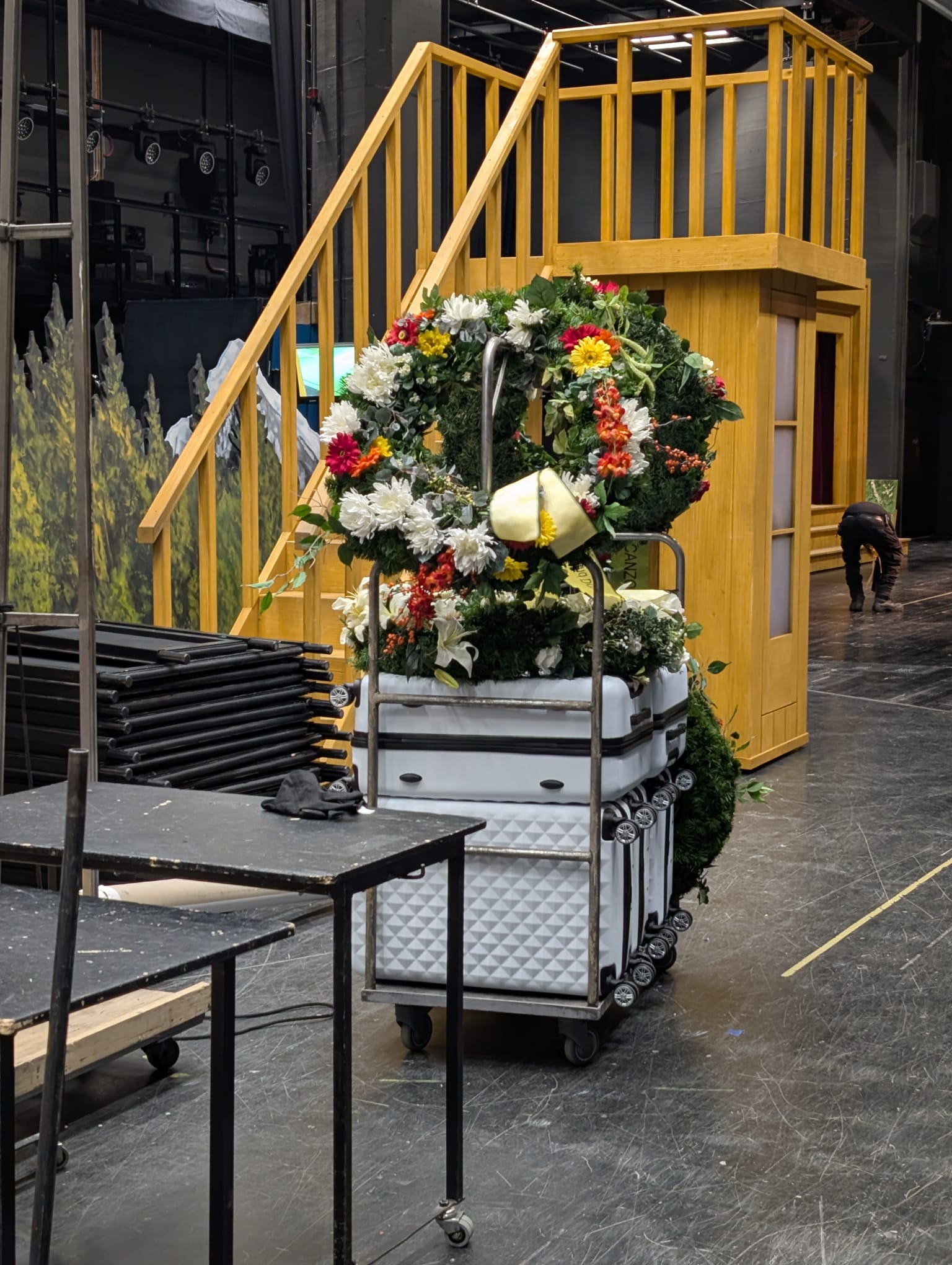 The stage was being set for a Swiss classic, Der Besuch der alten Dame, a 1956 comedy by playwright Friedrich Dürrenmat. We watched the stagehands as they worked to prepare the set – much of it involved tape measures and millimetre precision as they slid panels together. From there, we went offstage to the right, where properties were waiting to be put in place.