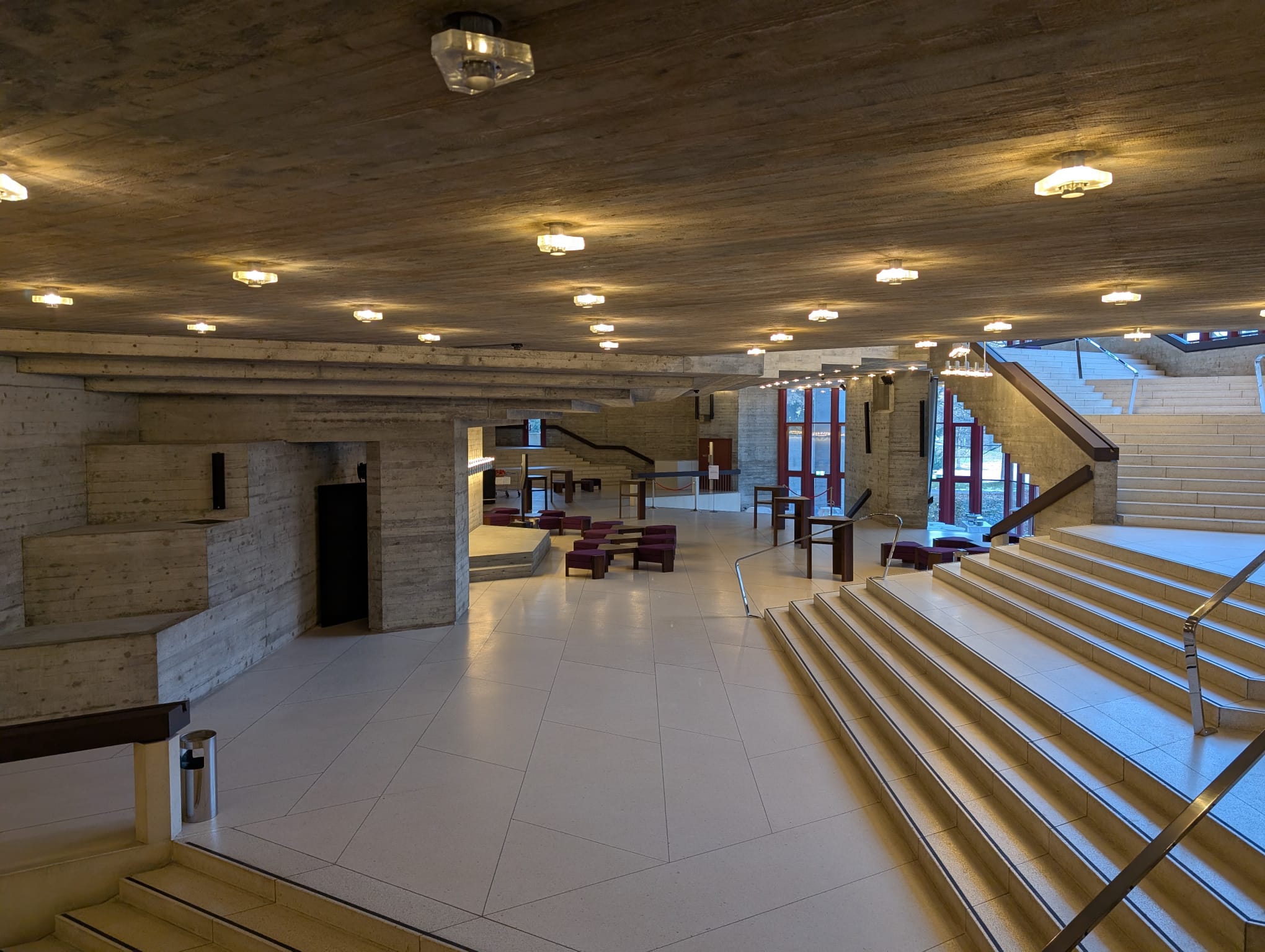 The auditorium seats something over 700 people, and has the advantage that there are no ‘bad seats’, so theatre-goers are guaranteed a good view wherever they are. No pillars here! The photo below was taken from the stage, which has the orchestra pit in the usual place.