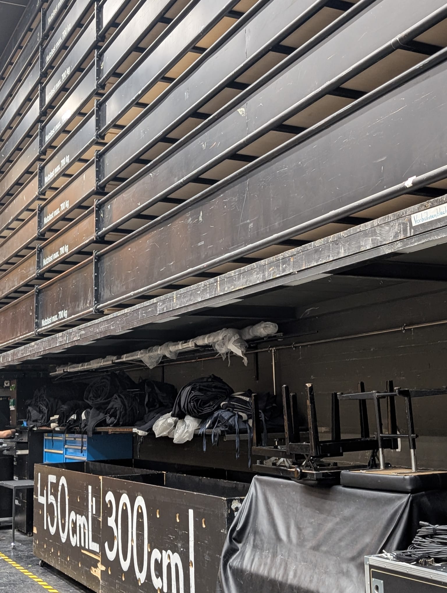 Next stop was one of the property stores. The dimensions here were hard to grasp. These drawers (third pic above) have a capacity of 700kg and can be lowered and opened, or slid onto the stage to make building the set easier and quicker. Items were grouped according to the different productions, and the lift here was two storeys high to enable everything to be shifted in and out.